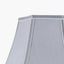 Classic 35cm faux silk shade in a bowed hexagon shape finished in a neutral steel grey colour with cream double edged tape detailing.