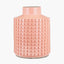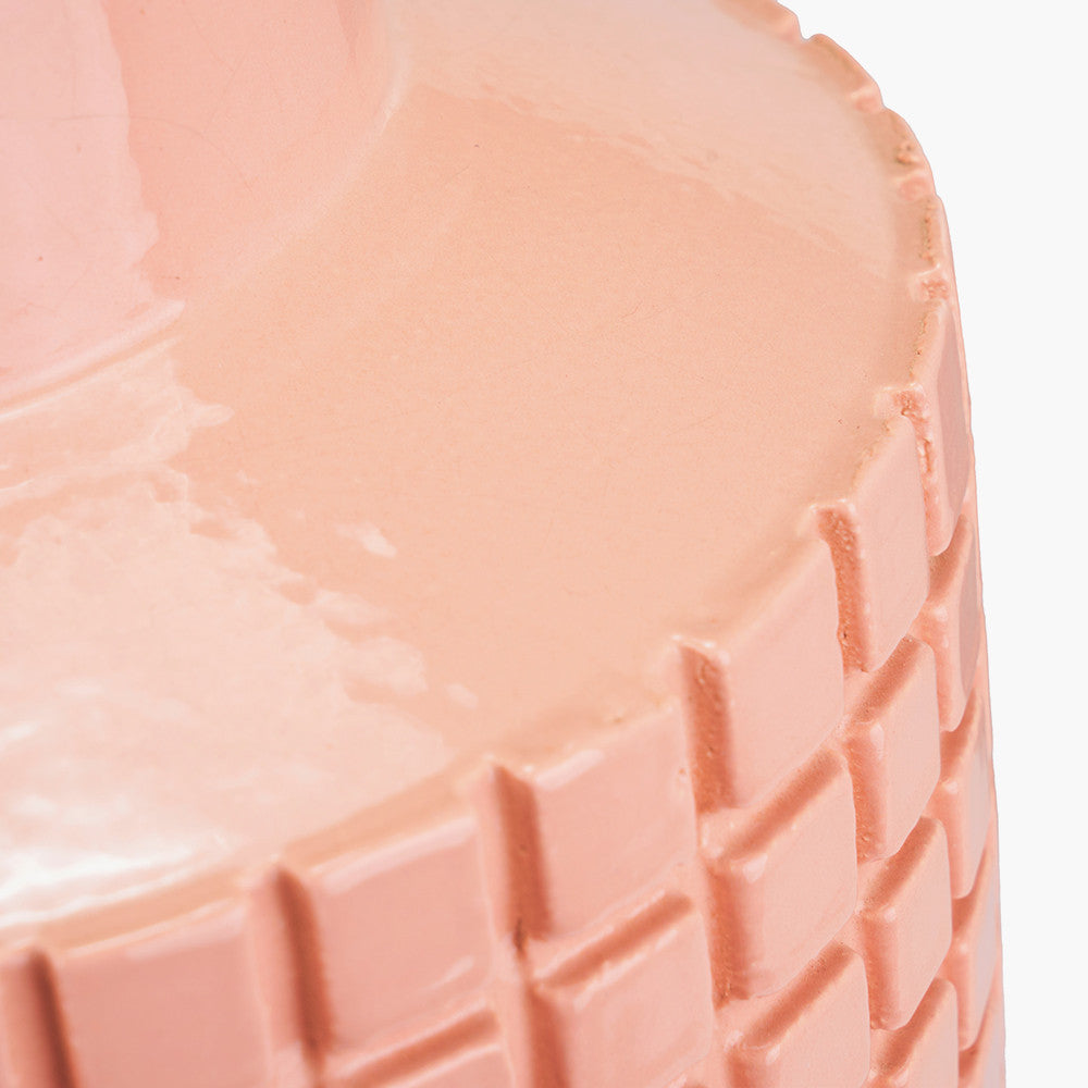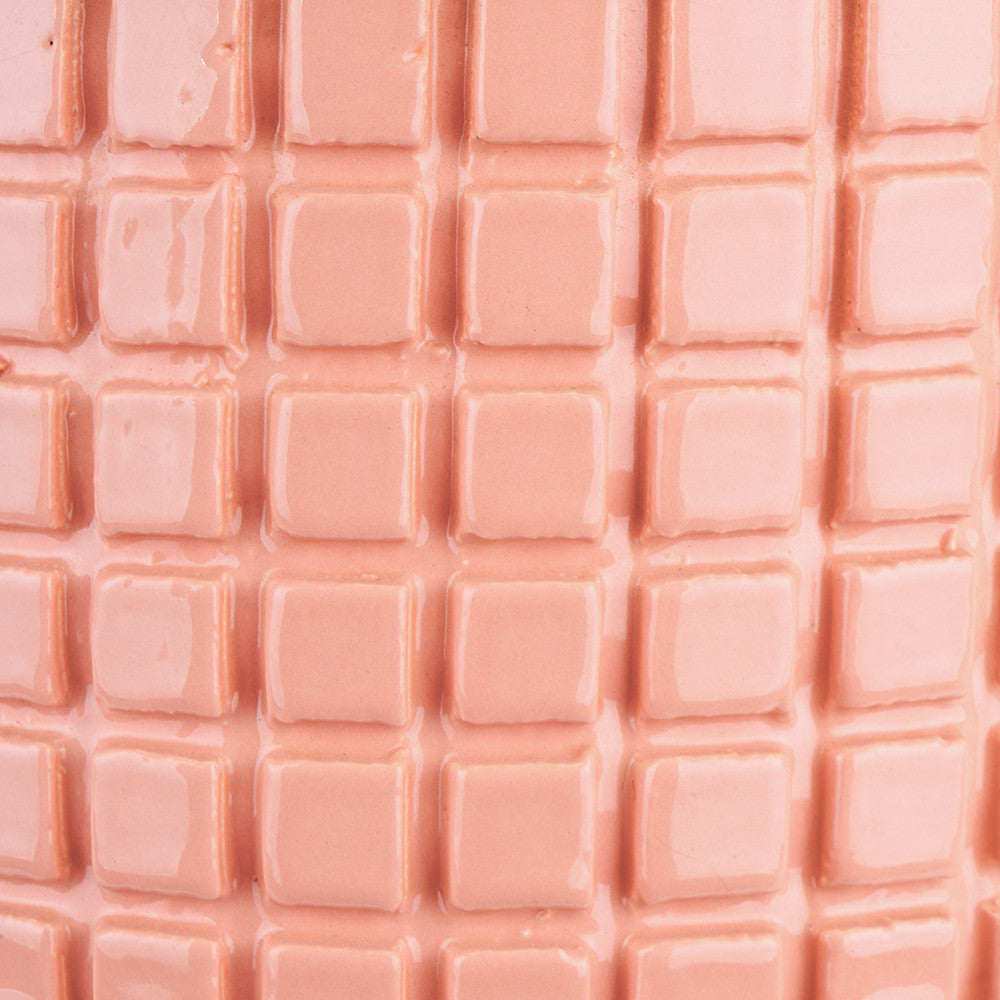 This vase features a straight sided design with a contemporary geo square texture, hand applied during manufacture. Made from stoneware and finished in a apricot semi matte gloss, this vase is a versatile piece that would look fabulous on a side table or mantel piece. This vase has a waterproof lining applied so can be used with a posy of fresh or dried flowers.
