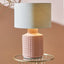 Made in the Phillippines, the Malone table lamp features a straight-sided design with a contemporary geo square texture, hand-applied during manufacture. Made from stoneware and finished in a textured, semi-matte apricot gloss, this stoneware table lamp is a versatile piece. The base is complemented with a modern self-lined linen cream cylinder lamp shade.