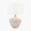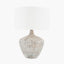 A curved elegant shape, this contemporary wood table lamp is made in India and has a mango wood base with a stunning hand-carved design across it, finished in a subtle whitewash. Finish with one of our stylish cylinder lampshades from our extensive range. Recommended lampshade size: 35cm diameter