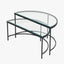 Marazzi S/2 Bevelled Glass and Black Metal Half Moon Coffee Tables