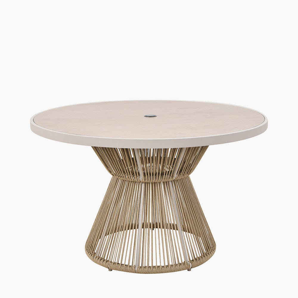 The dining table features a glass top with an Ash colored wood effect and a center hole for a parasol, adding both style and functionality. To maintain the quality and fresh look of this set, we recommend using an Aerocover when not in use. And with a 3 Year Structural Guarantee, you can trust in the high quality of this product. Shop now at House of Isabella for free UK delivery on all orders.