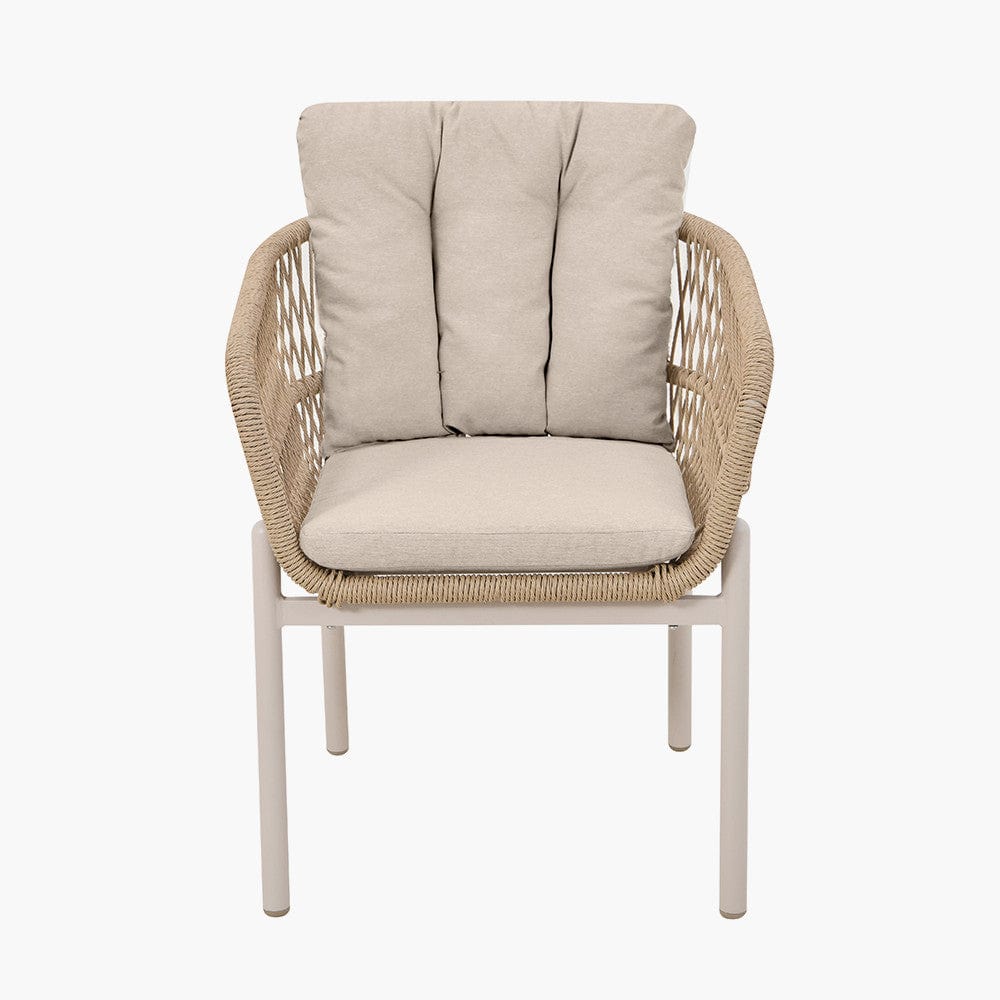 The Martic Outdoor Dining Set is the perfect addition to your garden for a luxurious outdoor dining experience. This set includes 4 dining chairs and 1 dining table, all featuring a powder-coated aluminium frame in a beautiful Latte color. The chairs and table are also adorned with a Synthetic Core Weave in Natural, creating a stunning contrast. The Light Putty colored cushions are made from Olefin fabric, known for its durability and resistance to staining and fading. Plus, they are quick-drying, making them ideal for outdoor furniture.