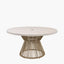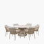 The Martic Outdoor Dining Set is the perfect addition to your garden for a luxurious outdoor dining experience. This set includes 6 dining chairs and 1 dining table, all featuring a powder-coated aluminium frame in a beautiful Latte color. The frame is complemented by a Synthetic Core Weave in Natural, creating a stunning contrast. The outdoor cushions, in a Light Putty color, are made from Olefin fabric which is highly resistant to staining and fading, making them perfect for outdoor use. The glass table top, finished in an Ash colored wood effect, features a hole in the center for a parasol, adding both style and functionality to the set. To maintain the quality and fresh look of your set, we recommend using an Aerocover when not in use. This product also comes with a 3 Year Structural Guarantee* for your peace of mind. Enjoy free UK delivery on this and other luxurious furniture at House of Isabella.