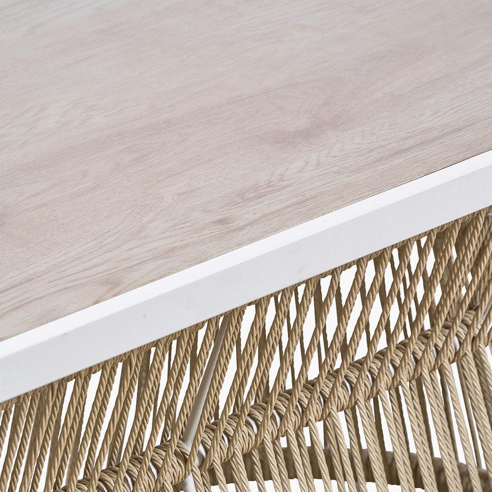 Upgrade your outdoor space with the sleek, contemporary Martic Outdoor Seating Set, designed for both style and comfort. This set includes a 2 Seater Sofa, 2 Armchairs, and a Coffee Table, all crafted from durable powder-coated aluminium in an elegant Latte finish. The frame is accented by a Natural Synthetic Core Weave, creating a modern yet organic feel. For added comfort, the set features plush seat cushions and scatter pillows in a Light Putty Olefin fabric; a popular choice in outdoor furniture for its superior resistance to stains, fading, and quick-drying properties. The coffee table is topped with glass and finished in an Ash wood effect, adding a sophisticated touch to this premium collection.