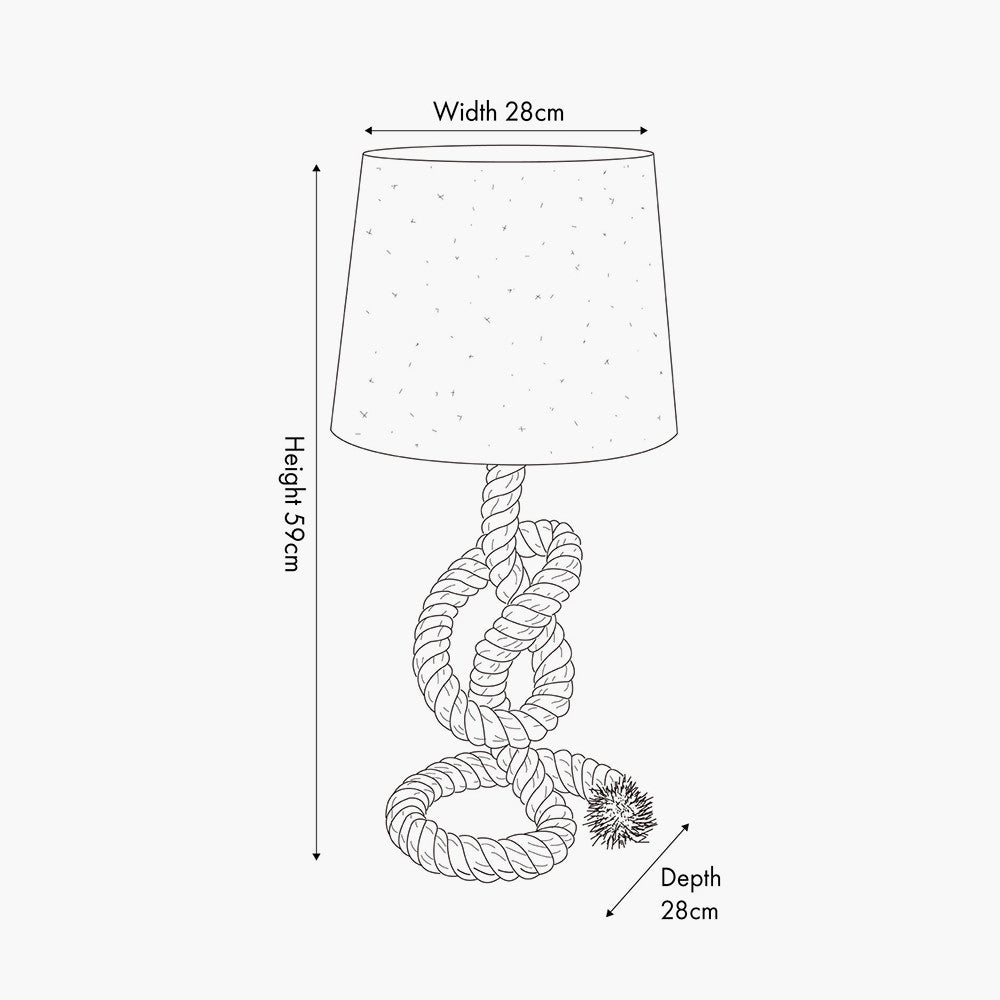 Fitting into a naturally nautical interior perfectly this knotted rope table lamp holds its shape perfectly without any visible metalwork Topped with a natural slubby cotton shade, this lamp adds coastal charm to your interior. Also available as a floor lamp.