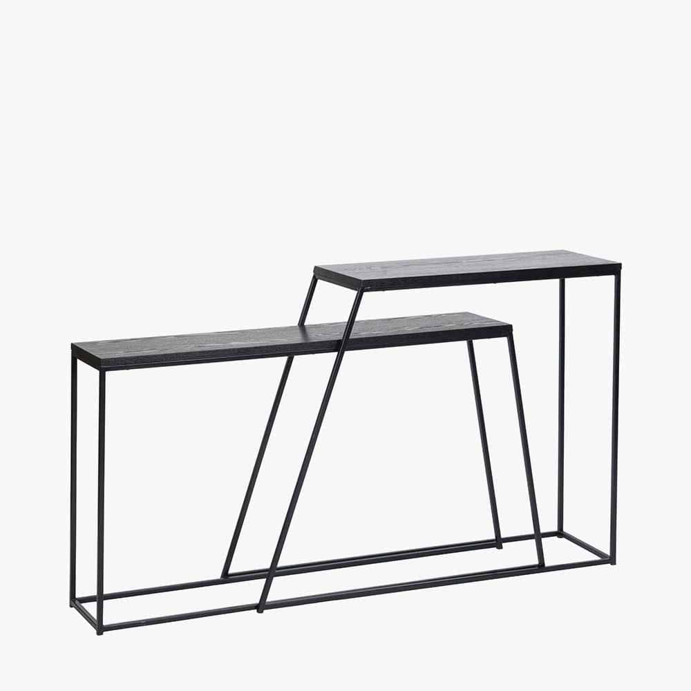 Mashiko S/2 Black Ash Veneer and Black Metal Console Tables
