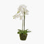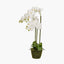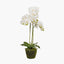 Transform your home with our incredibly lifelike, faux white poted orchid. With its elegant white flowers and realistic moss pot, this gorgeous plant will add a touch of sophistication to any room. Display it on a console table or a side table, simply in its moss pot, or why not place it in a basket or pot of your choice?