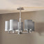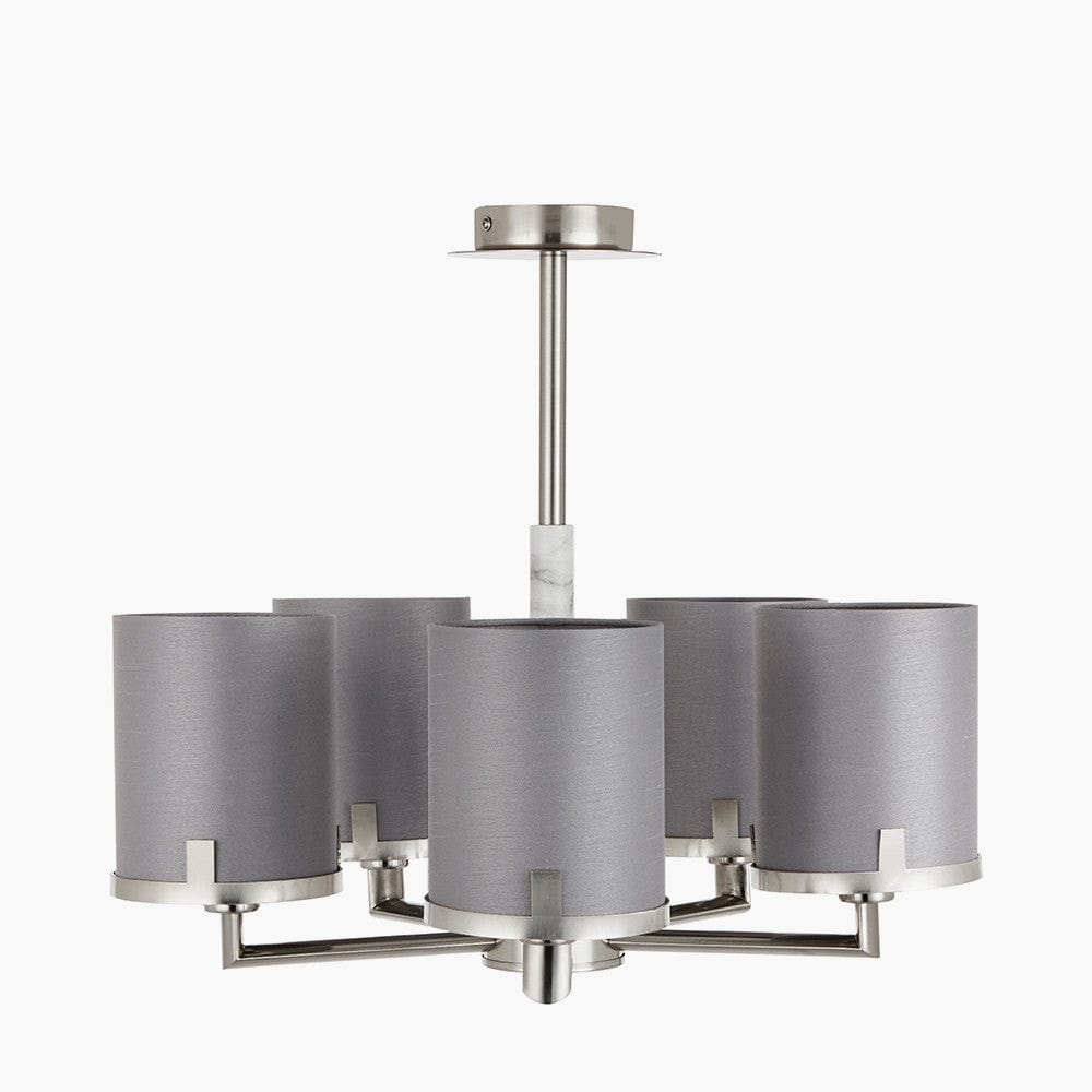 A simple statement. The Midland 5 arm electrified pendant is finished with a marble effect metal stem with brushed nickel details. This pendant brings the look of a contemporary hotel style to the home.