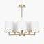 A simple and elegant 5 arm electrified pendant finished with a marble effect metal stem with gold detailing. The shades are held by a champagne gold metal ring. The Midland has the look of hotel-style for the home. View the rest of the collection which includes a table lamp, wall light, floor lamp and 3 arm pendant.