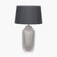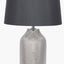 This all-over textured ceramic table lamp is finished in a striking silver effect giving it a contemporary look. The lamp also comes complete with a contrasting black tapered faux cotton shade lined with a matching silver card to reflect the light when lit. Also available in gold.