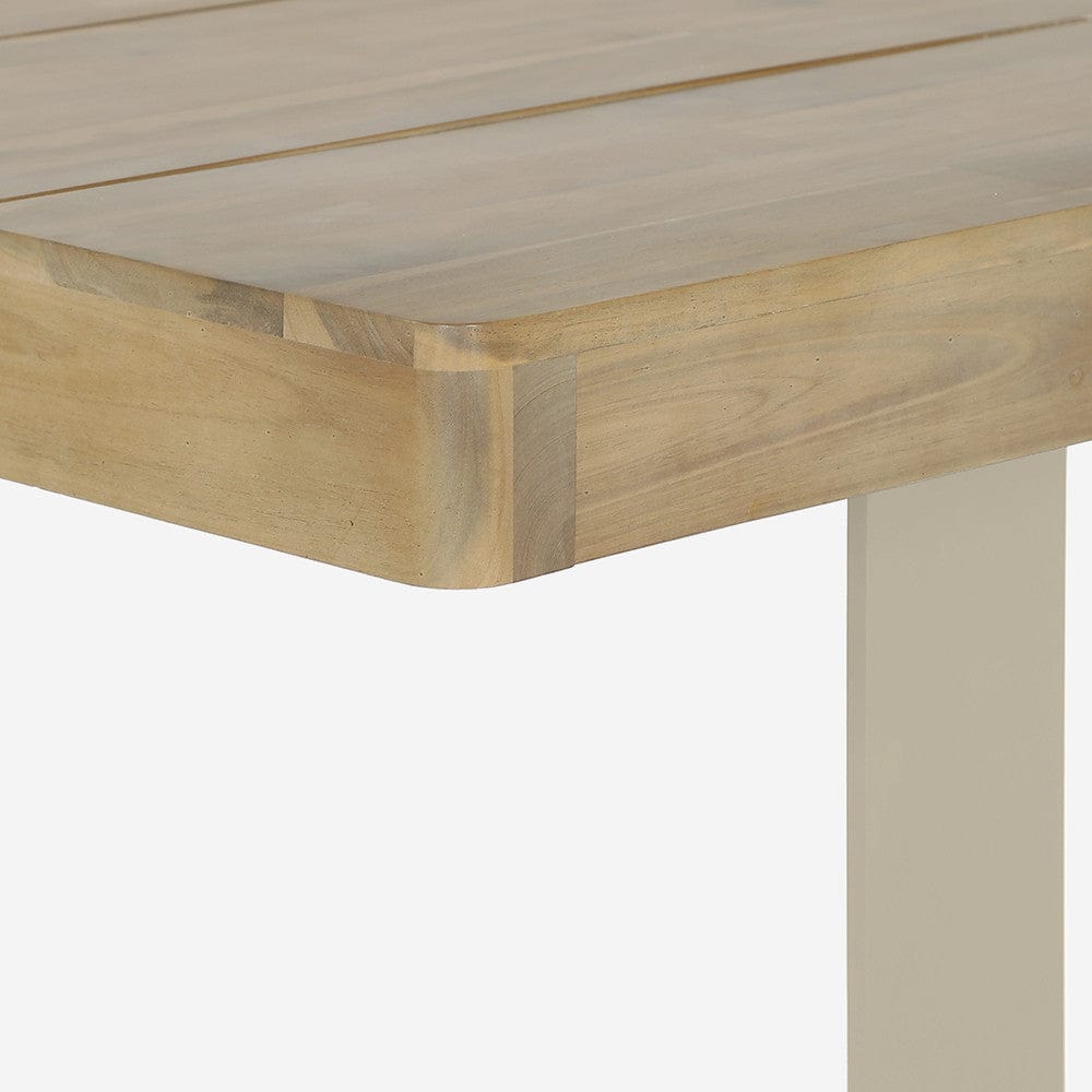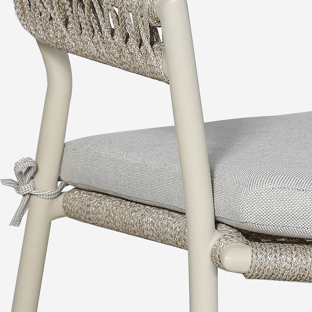 Introducing the Osaka Latte Outdoor 6 Seater Dining Set, the perfect addition to your outdoor space. Made in Vietnam, this dining set features a contemporary design and a combination of high-quality materials. The table top is made of environmentally friendly light teak effect acacia wood, while the frame is powder coated in a latte colour and the chairs are woven with natural wheat coloured rope. Not only is this set visually stunning, but it is also low maintenance, durable, and resistant to stains and fading. With a 3 Year Structural Guarantee, you can enjoy this set for years to come. Protect your set with an Aerocover when not in use to maintain its quality. Shop now and enjoy free UK delivery at House of Isabella.
