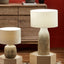 A tall elegant stoneware table lamp from the Philippines with a beautiful embossed peacock feather design and finished in a soft matt grey. Each lamp is handmade therefore you will be the proud owner of a completely unique piece. Shade with any number of our beautiful shades to complete the look. Recommended lampshade size: 40cm diameter