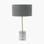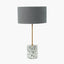 The stunning Pavonazzo Terrazzo Table Lamp, crafted in India in collaboration with Designers Guild, has a terrazzo base with chips in green/grey hues and a sleek, slim metal, brass-coloured column. The striking table lamp base is adorned with a grey open weave cotton mix shade to complete the stylish look. This table lamp will look fantastic in any room within your home and is sure to make a statement.