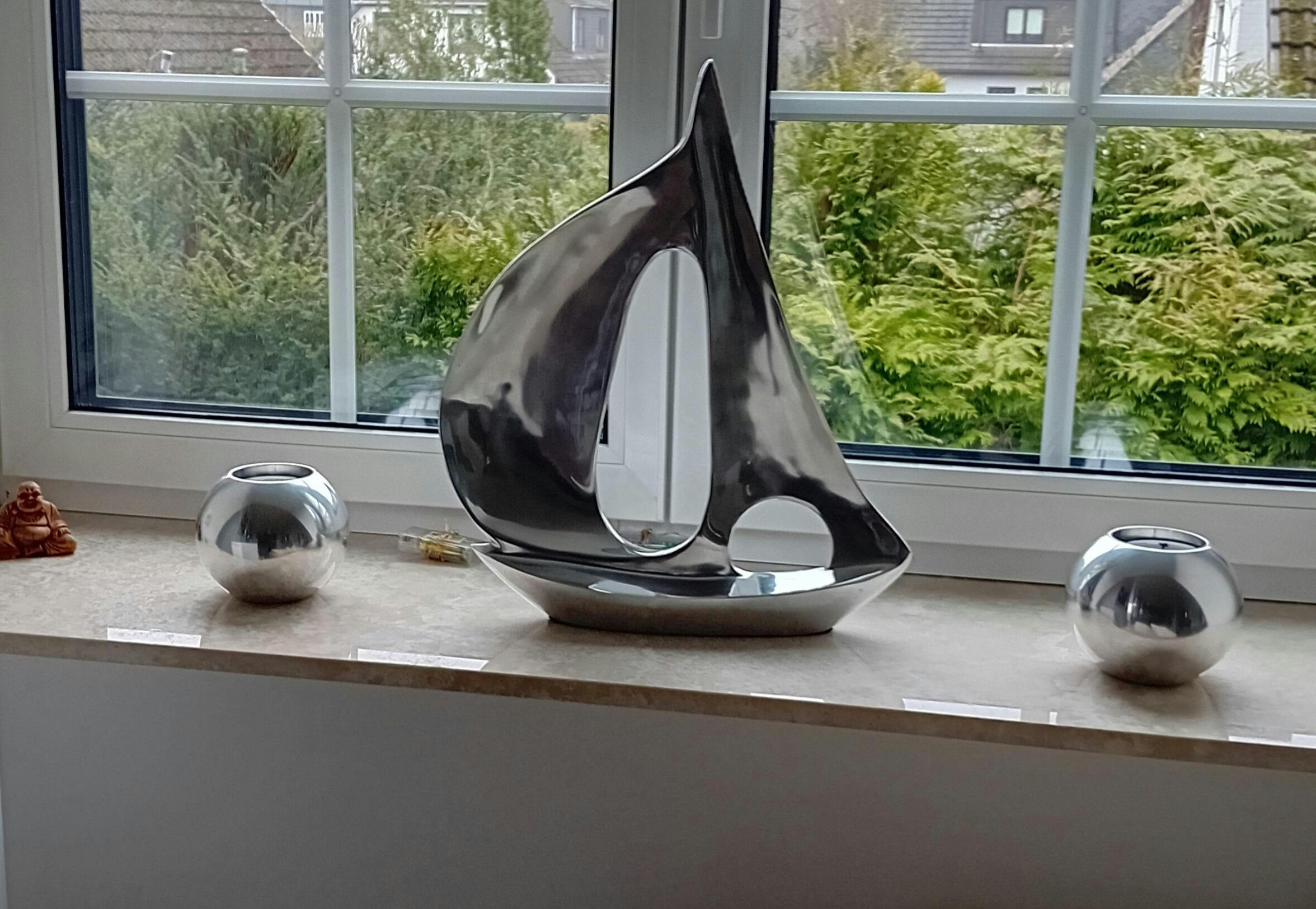 Bring a contemporary coastal look into your home, this stylish sailing boat crafted from polished aluminium will look fabulous in a traditional or modern space. This piece would be a tasteful choice in a bathroom or coastal themed setting.