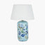 Detailed and intricate paintings of trailing flowers and birds, made in collaboration with Designers Guild, using their iconic Porcelaine de Chine print, have been expertly handpainted on the ceramic lamp base, in serene shades of blue. The table lamp base is topped off with a clean, crisp white, open-weave, self-lined tapered shade. The well proportioned table lamp base will be a focal point for your interior.