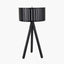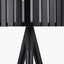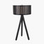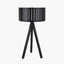 Sleek, modern tripod design, this lamp is finished in a striking black. A wooden slatted shade elegantly diffuses the light whilst the tripod element gives this table lamp a contemporary edge.