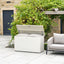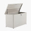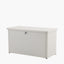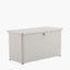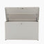 Introducing our Rhode Island Small Galvanised Steel Cushion Box in a beautiful pebble color. Made from high-quality galvanised steel, this outdoor storage box is designed to keep your cushions safe and secure when not in use. Its contemporary slim design, gas pump hinges, and adjustable feet make it easy to move around as needed. For added security, the box also comes with a lock and key. To maintain its quality and fresh look, we recommend using an Aerocover when not in use. This product also comes with a 3 Year Structural Guarantee for your peace of mind. Dimensions: W134xD62xH78cm.