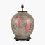 Our Jenny Worrell range features a beautiful array of designs. Lovingly referred to as antiques of the future, they made from hand-blown glass which is internally decorated with skilfully cut out images. This one features a gorgeous floral design on a distressed gold and off-white painted background. Recommended lampshade size: Cylinder 40cm diameter Recommended lampshade size: Empire 50cm diameter