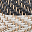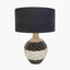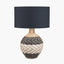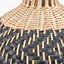 Hand crafted from delicate rattan, incorporating a woven monochrome pattern to add further interest, this striking table lamp will suit a range of interior styles from Scandi to Coastal. The expertly crafted table lamp, which will add texture and tactility to your home with its woven base, is topped off with a tonal black, faux cotton, lined lampshade to complete the look.