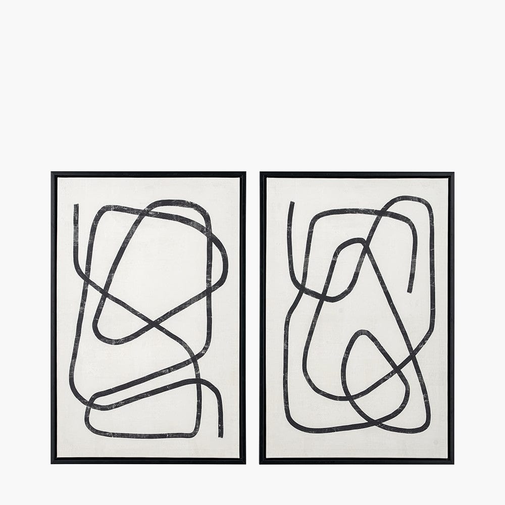S/2 Black Squiggle Print Canvases with Black Frames