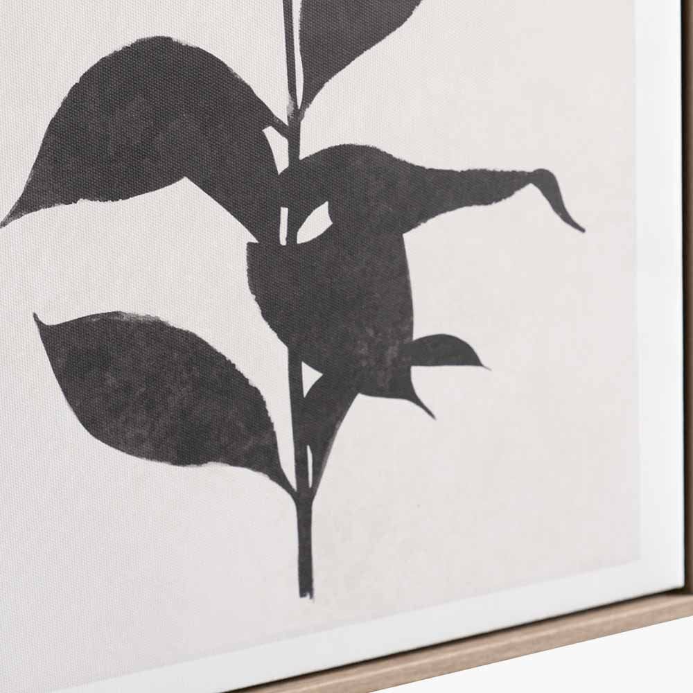 Our set of 2 canvasses with leaf print design are finished in a monochrome colour palette of black and neutrals. The on-trend leaf design is a simple silhouette that will add pattern and interest to your interior space. The canvasses are finished with a natural coloured recycled poly frame to accentuate the natural styling of the wall art pieces.