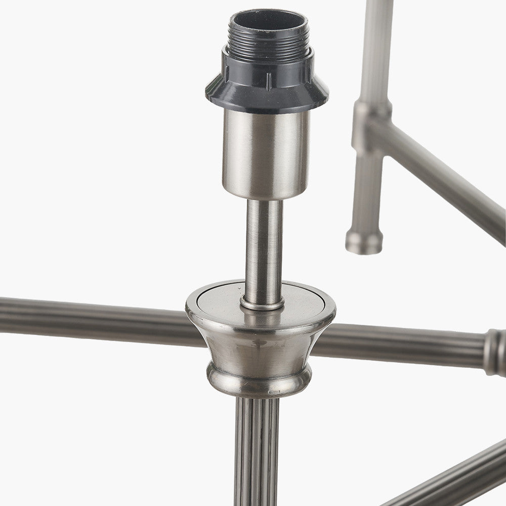 Introducing the Salvatore Antique Silver Metal 6-Arm Pendant, a versatile addition to your home decor that suits both contemporary and traditional settings. Handcrafted in India, its antique silver finish and ribbed detailing add a touch of elegance to any space. This stunning pendant is perfectly topped off with six beautifully crisp, slubby cotton empire shades in a cream colour.