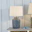 In dreamy deep blue and white, this ceramic lamp base comes printed with a repeated fish design and a complementing tapered, textured cotton cream shade.