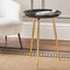 Elevate your space with our stunning Seline occasional side table, beautifully crafted in India. Characterised by its distinctive cast metal gold metallic legs and a sleek black enamelled tabletop, this occasional table effortlessly adds a touch of sophistication and offers a subtle pop of colour to complement your space.