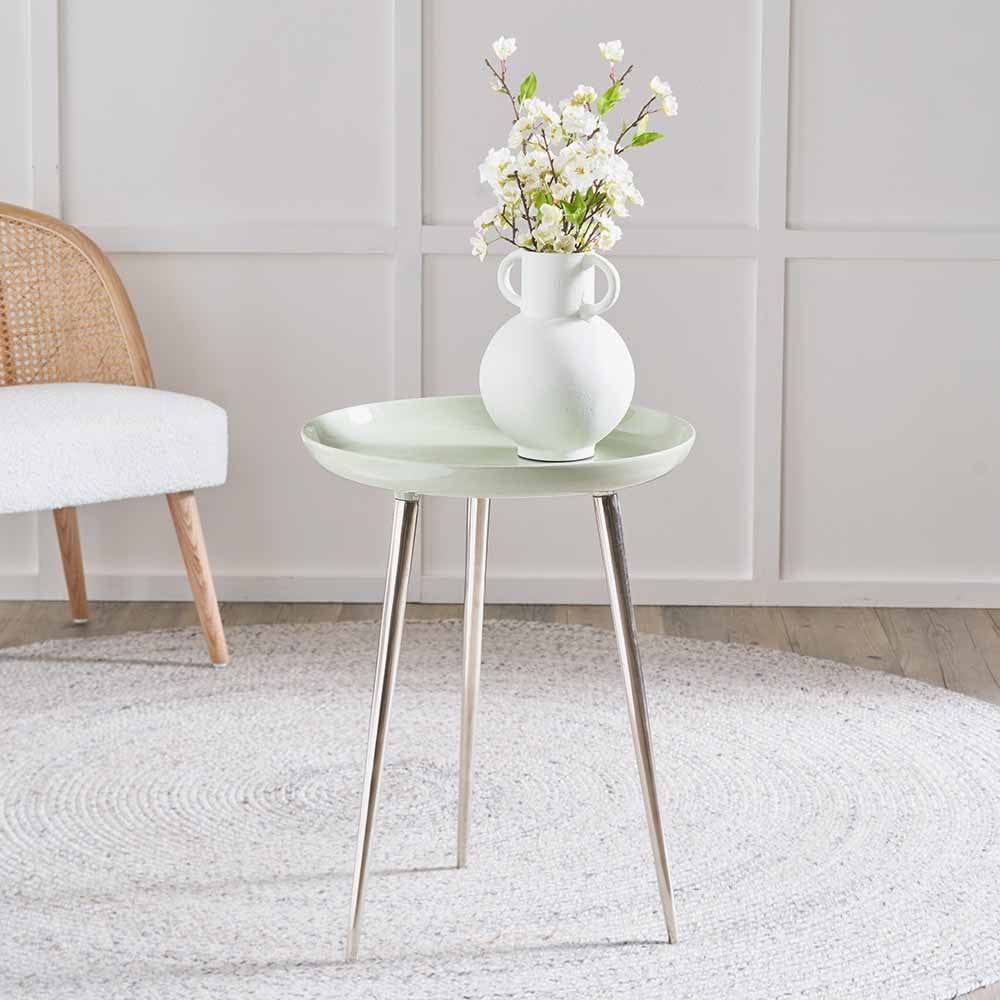 Seline Sage Enamel and Silver Metal Side Table