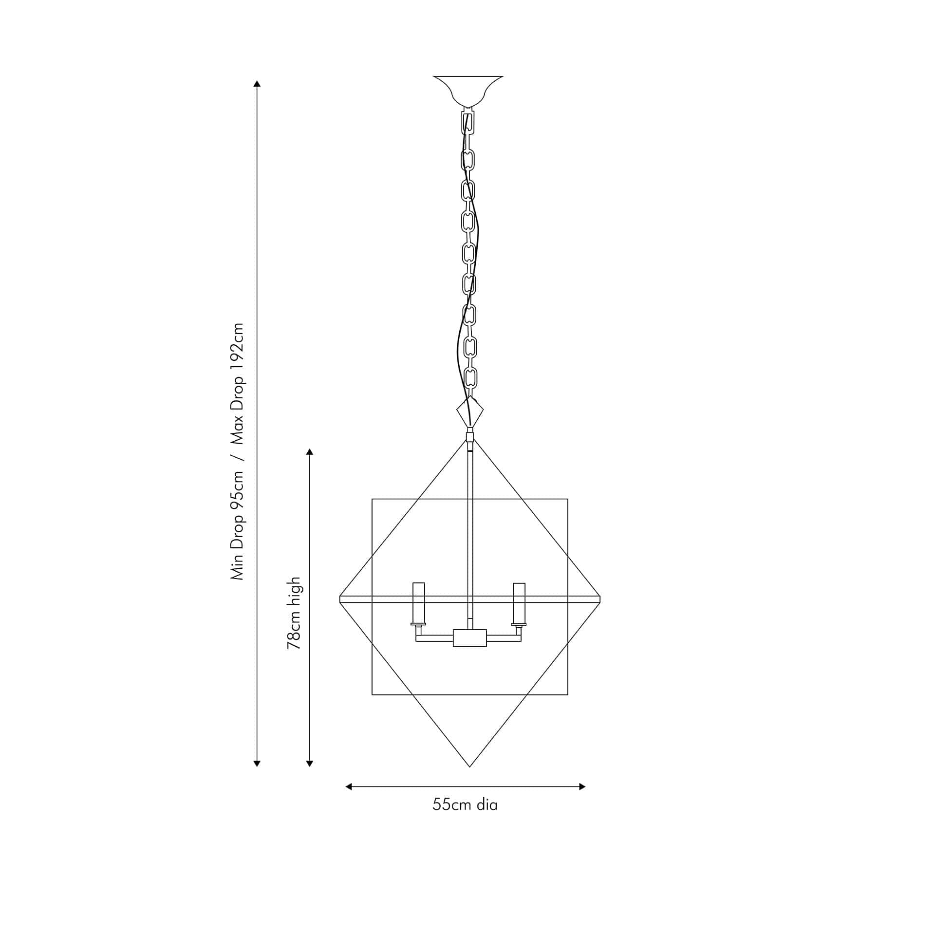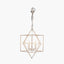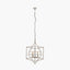 This showstopper of a ceiling pendant is created with a slimline metal frame in a geometric shape and finished with an antique silver foil effect. Lit by 4 bulbs it creates a striking centrepiece for the home. Also available in antique gold.