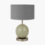 This elegant table lamp is thoughtfully designed to make a bold statement. The lamp base boasts a sleek sage enamel finish highlighted by luxurious silver metallic accents, embodying a refined hotel-luxe style. Completing the look is a the steel grey cotton cylinder lamp shade, eprfectly complementing this striking lamp base.