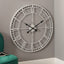 One of our largest clocks, you can make a statement on your wall with this classically designed metal wall clock finished in a distressed, soft grey colouring. The metalwork roman numerals are easy to read and help to create a feature piece for any wall. Various finishes are available.