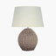 This table lamp base is made from a beautiful antique cream wash rattan wove into a spherical shape. Bring the beach hut feel to your home with this relaxed lamp, complete with its own cream slubby cotton shade. Also available in a larger size as a base only.
