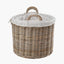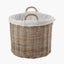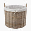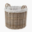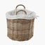 Introducing our tobs set of 2 Kubu rattan log baskets, the perfect storage solution for any household. Made in Indonesia from rattan in a soft grey colour, these round baskets are stylish and practical with handles for easy transportation. The baskets are lined with removable, washable linings and stack easily inside one another, when not in use.