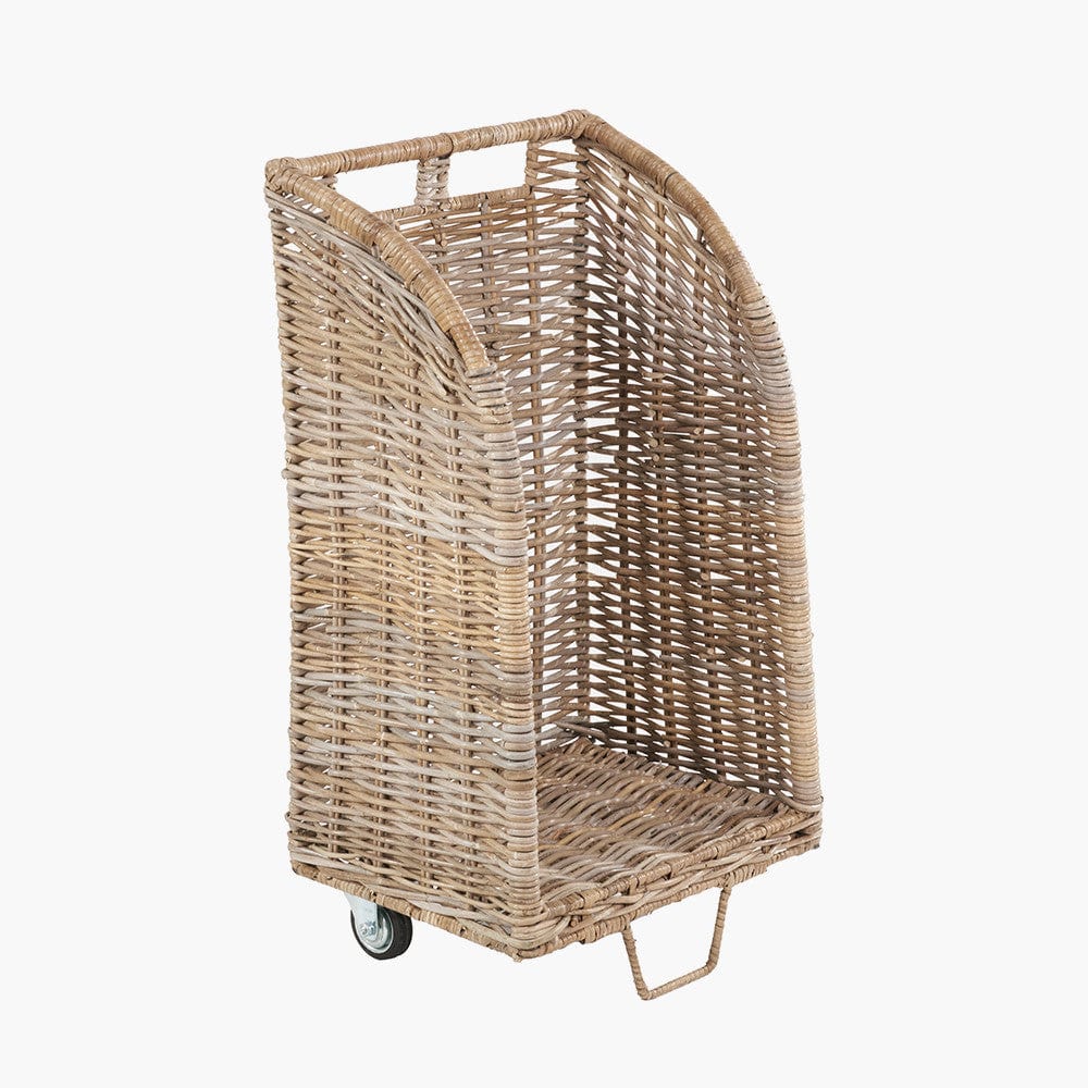 Tobs S/2 Grey Kubu Rattan Log Basket Trolleys