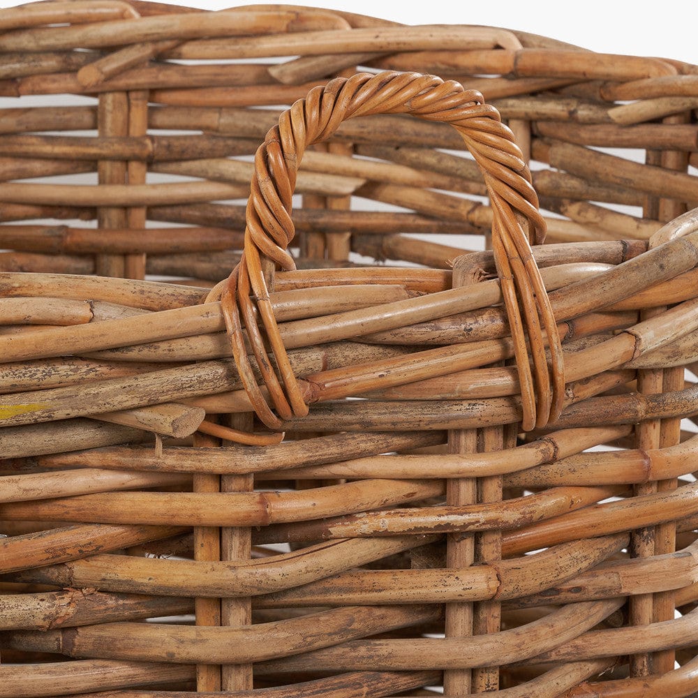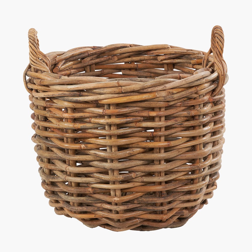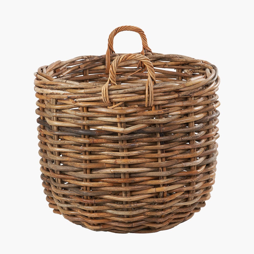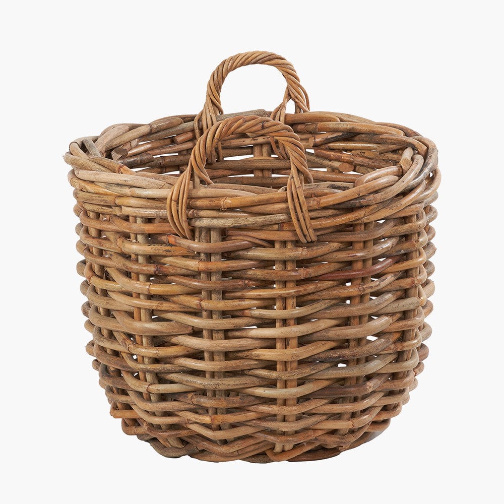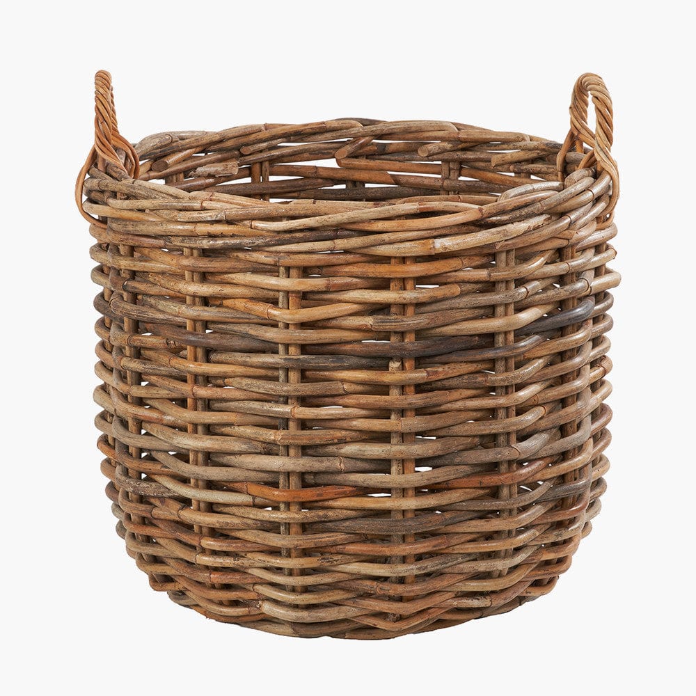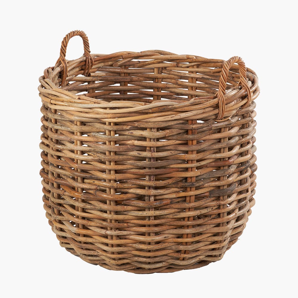 This set of 3, heavy gauge, chunky rattan log baskets, made in Indonesia, are perfect for storing multiple household items. Thec round baskets with handles are extremely versatile and ample size for storing logs next to your fireplace, blankets, magazines, or toys. The 3 baskets with ample proportions are suitable for indoor/outdoor use and are easily transportable with the handles and stack neatly inside each other when not in use. The natural colour of the rattan ensures the baskets will sit comfortably in any interior and will add a cosy, rustic charm to your home.