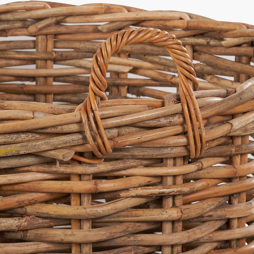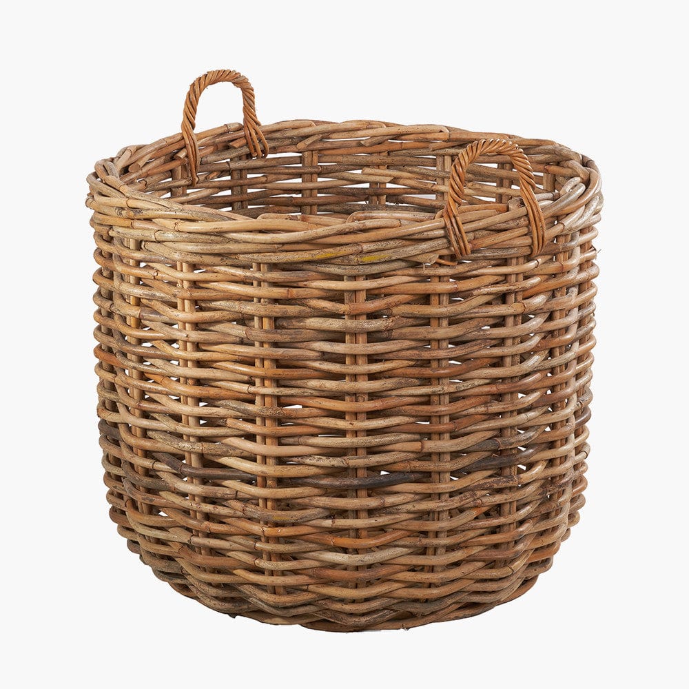 This set of 4, tobs heavy gauge, chunky rattan log baskets, made in Indonesia, are perfect for storing multiple household items. The round baskets with ample proportions are suitable for indoor/outdoor use. They are the perfect size for storing logs next to your fireplace, blankets, magazines, or toys. The 4 storage baskets are easily transportable with the handles and stack neatly inside each other when not in use. The natural colour of the rattan ensures the baskets will sit comfortably in any interior and will add a cosy, rustic charm to your home.