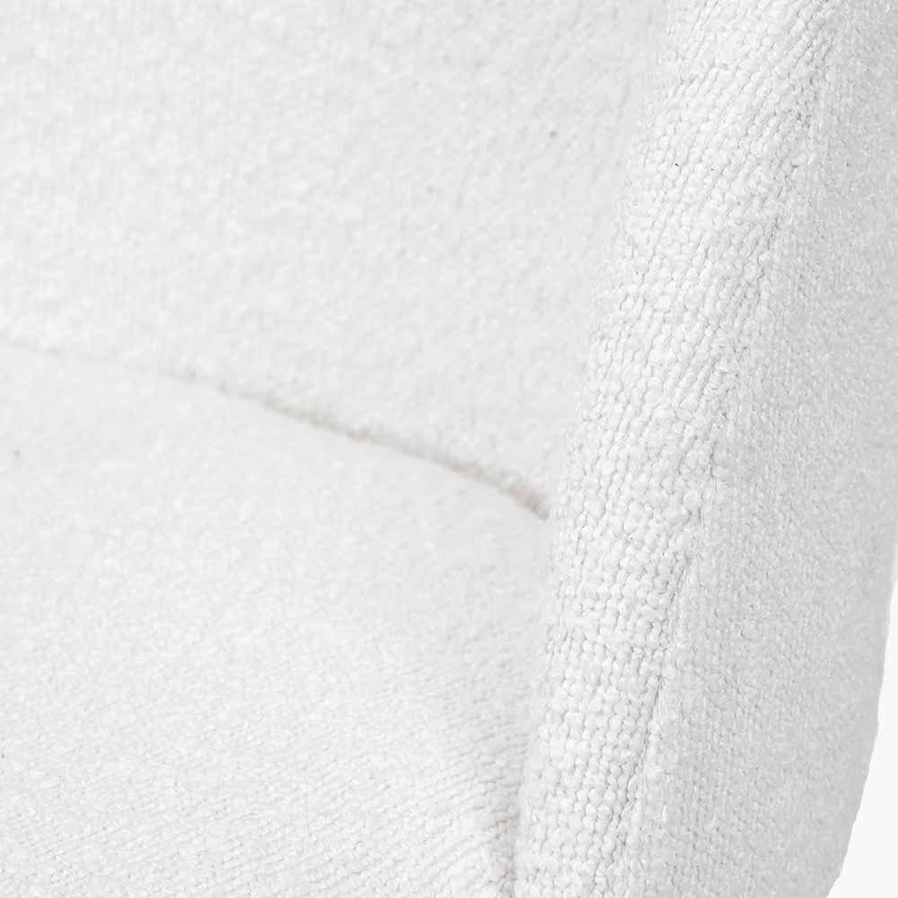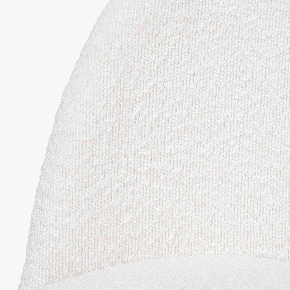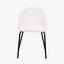 Introducing our contemporary Turi Boucle Dining Chair - a luxurious addition to any dining space. The sleek black metal legs and curved back exude sophistication, while the soft white boucle upholstery offers comfort and modern style. Elevate your dining experience with this elegant piece.