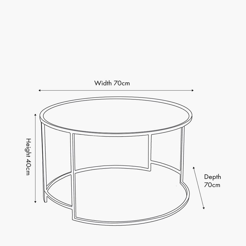 The Veneziano Antique Gold Metal and Black Glass Round Coffee Table is finished in an antique gold leaf effect metal frame with an atmospheric black glass table top. This stylish coffee table will create an art-deco statement in your living room.