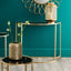Veneziano Antique Gold Metal & Black Glass Half Moon Console