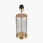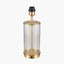 Pretty glass lamp base in crisp clear glass with contrasting champagne metalwork. This lamp will bring classic elegance to any room especially if topped with a silky cylinder shade Recommended lampshade size: 35cm diameter