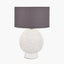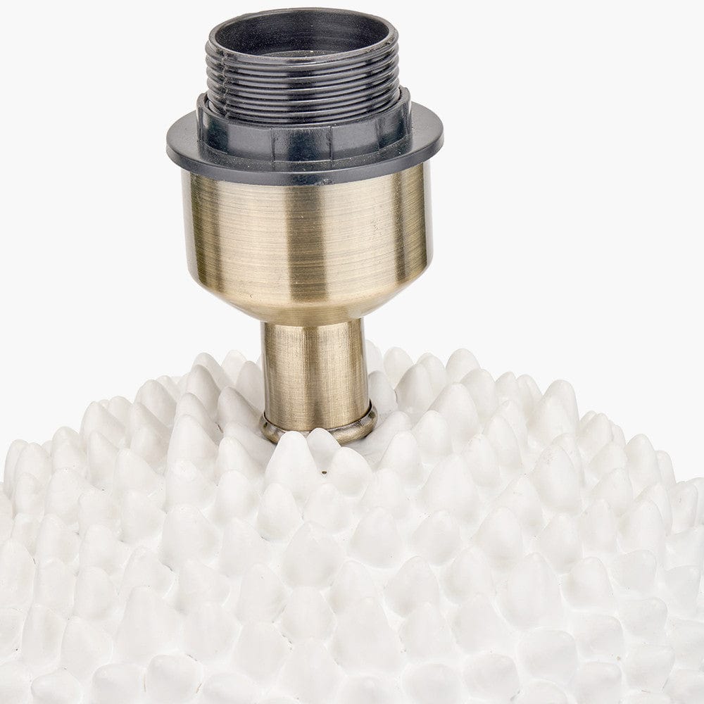 Introducing our stunning sea urchin inspired, ceramic table lamp base, expertly crafted in a clean white hue. Its eye-catching texture adds a fun and tactile statement, making it the perfect focal point for any living space. The textured sphere sits on a smooth, clean base elevating this table lamp base to centre stage. The look is completed perfectly with the luxurious, heavyweight grey cotton cylinder lamp shade.