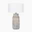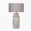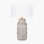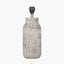 Finished in a grey wash this lamp gives a softer rustic style. Handcrafted in India, the base is made from mango wood and hand-carved with an organic stripe design giving each one a unique look. Finish with a neutral grey or ivory shade to create a coastal feel to your decor. Recommended lampshade size: 30cm diameter