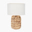 This effortlessly stylish Zadi table lamp base is lovingly crafted from hand woven water hyacinth around a wire frame, plaited design. The well-proportioned table lamp is finished with a slubby natural self-lined linen lamp shade that would look fabulous in a scandi or coastal interior to add a soft, organic texture