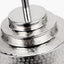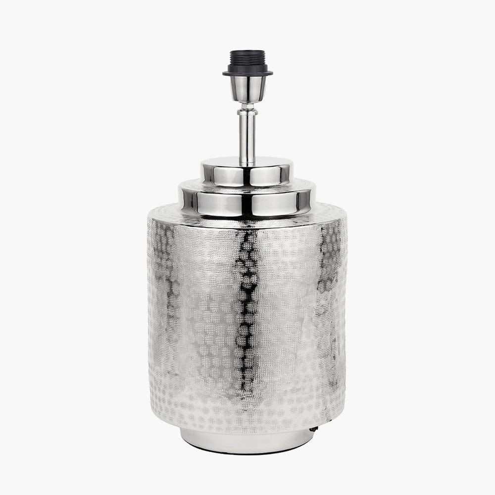Our stylish shiny silver metal table lamp is lovingly made in India. The long-standing technique of hand-hammering has been used to create this beautifully textured and charming shiny silver, metal table lamp. Create some drama by adding one of our beautiful cylindrical lamp shades. Recommended lampshade size: 40cm diameter