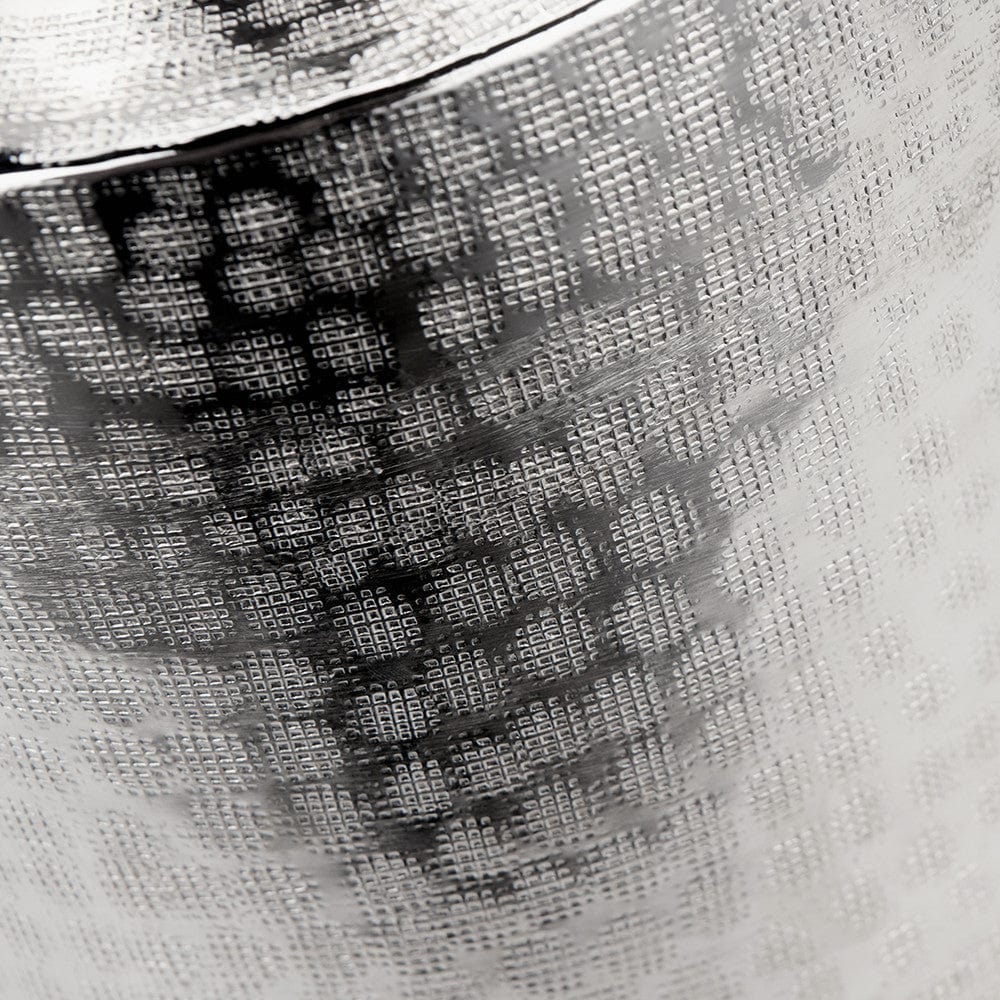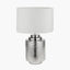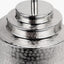 Our stylish shiny silver metal table lamp is lovingly made in India. The long-standing technique of hand-hammering has been used to create this beautifully textured and charming antique brass, metal table lamp. The metal table lamp base is adorned with a modern white linen cylinder lamp shade to complete the look. The self-lined shade in an open-weave material allows the light to filter through creating an ambient glow.