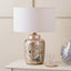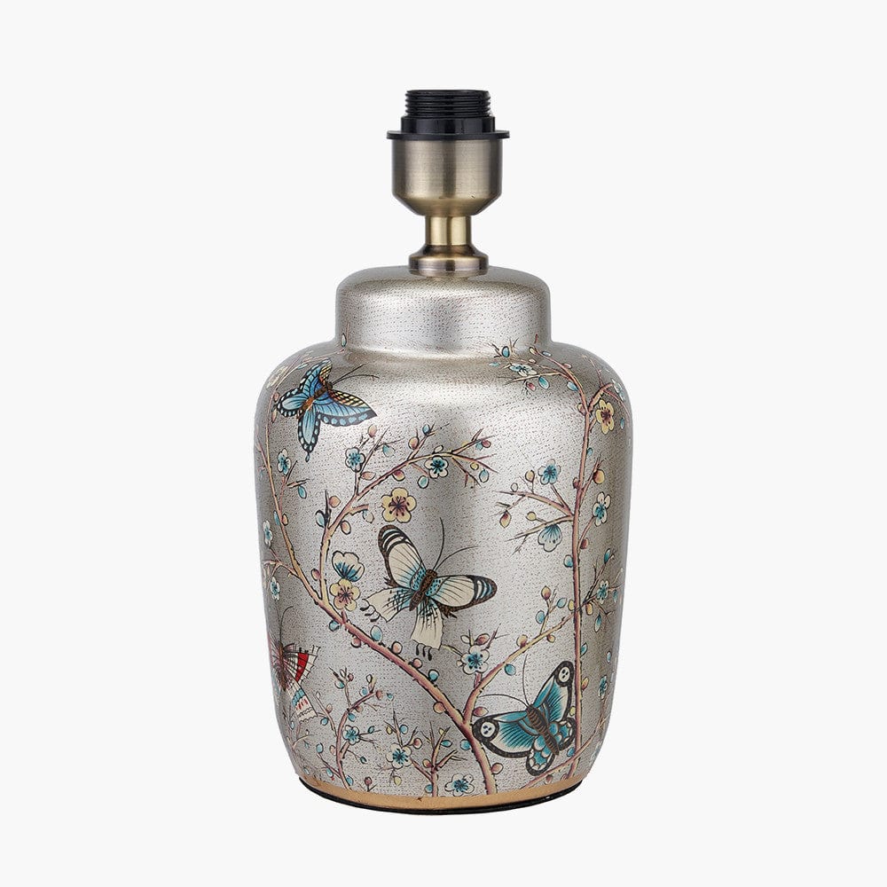 This stunning ceramic table lamp has a beautiful butterfly and floral design with a vintage effect champagne gold background. The decal design on this contemporary shaped base pairs beautifully with our ivory cotton mix cylinder lamp shade.