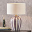 Elevate your space with our ceramic Priscilla table lamp base in a contemporary white and lilac colour palette. The stylish bold stripe exudes fun and sophistication, the perfect statement piece. The table lamp base is topped off with a luxurious white, heavy-weight cotton shade.