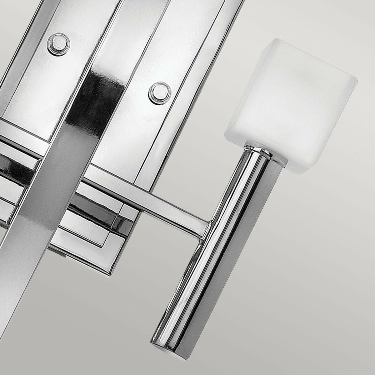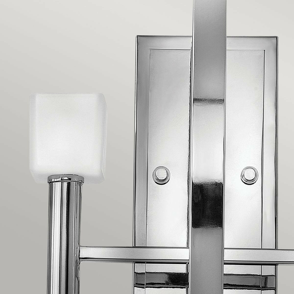 Mondo's bold arm extensions in a brilliant Polished Chrome finish are complemented by the petite, frosted, cube-shaped glasses, adding sophistication to this contemporary collection.